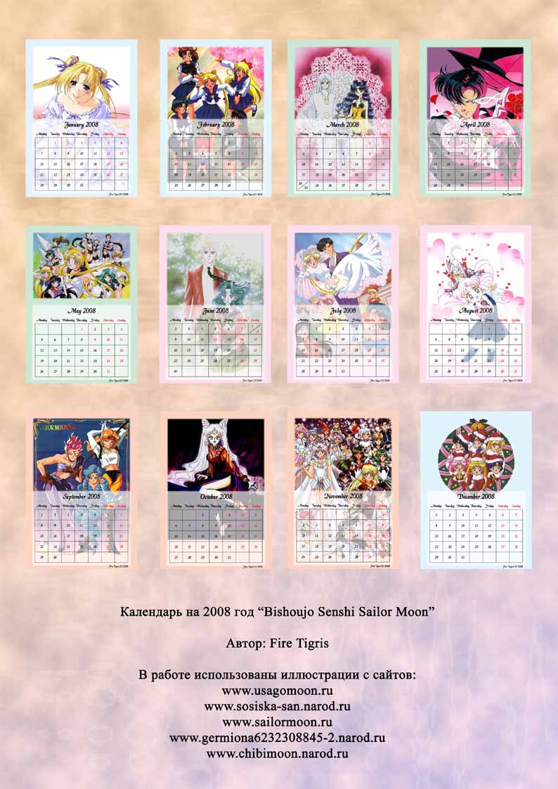 Небольшой подарок - календарь на 2008 год с героями Сейлор Мун ^_^ Дружно благодарим за это творчество Fire Tigris.